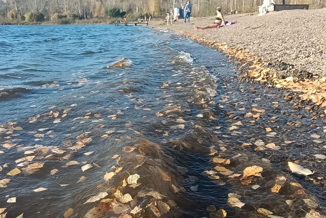 Бархатный сезон по-кузбасски. Кемеровчане загорают и плавают в озере в окружении палой листвы — фотоПоказываем, что происходит на городских пляжах в последний день бабьего лета