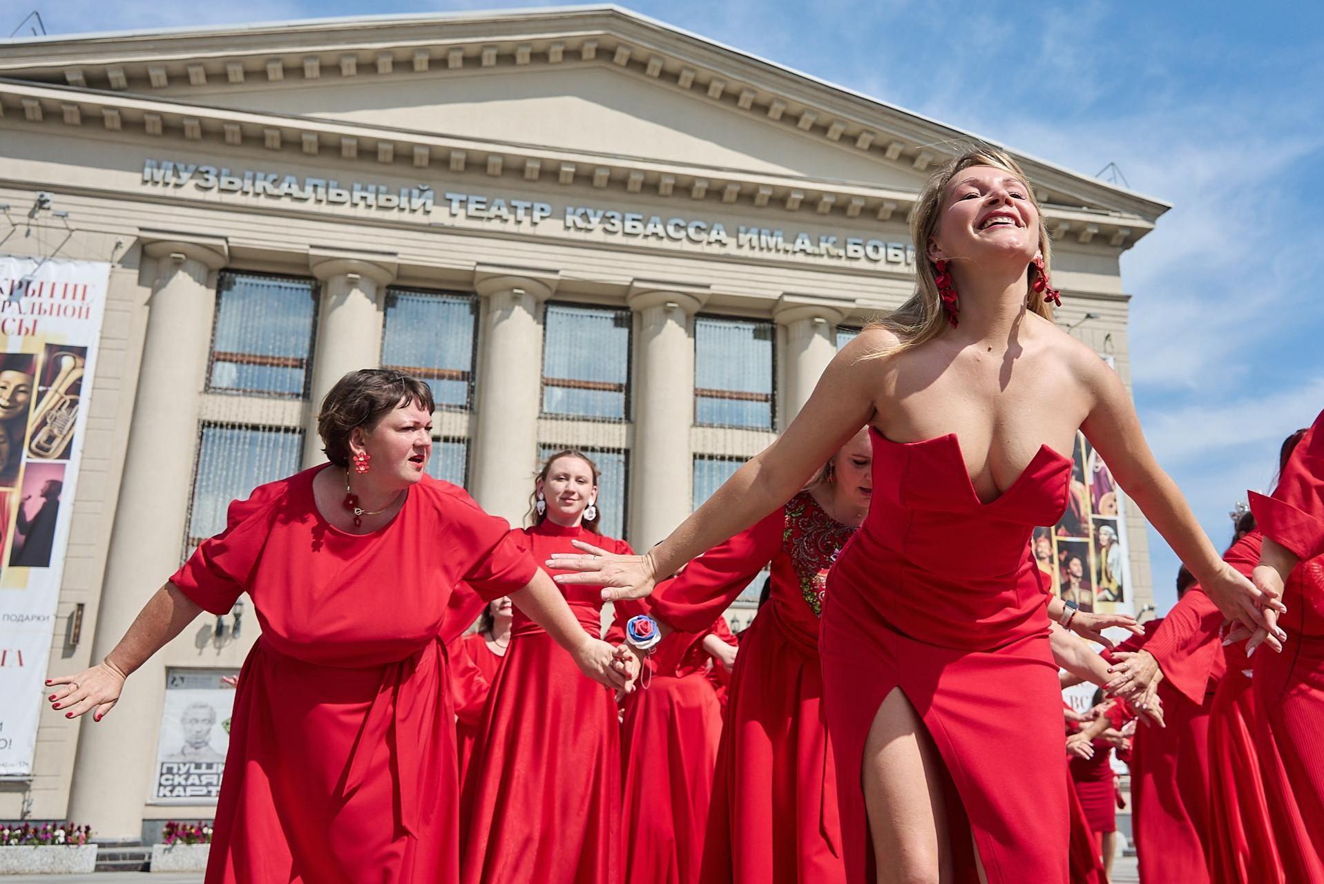 Больше сотни кемеровчанок в красных платьях вышли на улицы. Зачем?Они удивляли жителей центра города